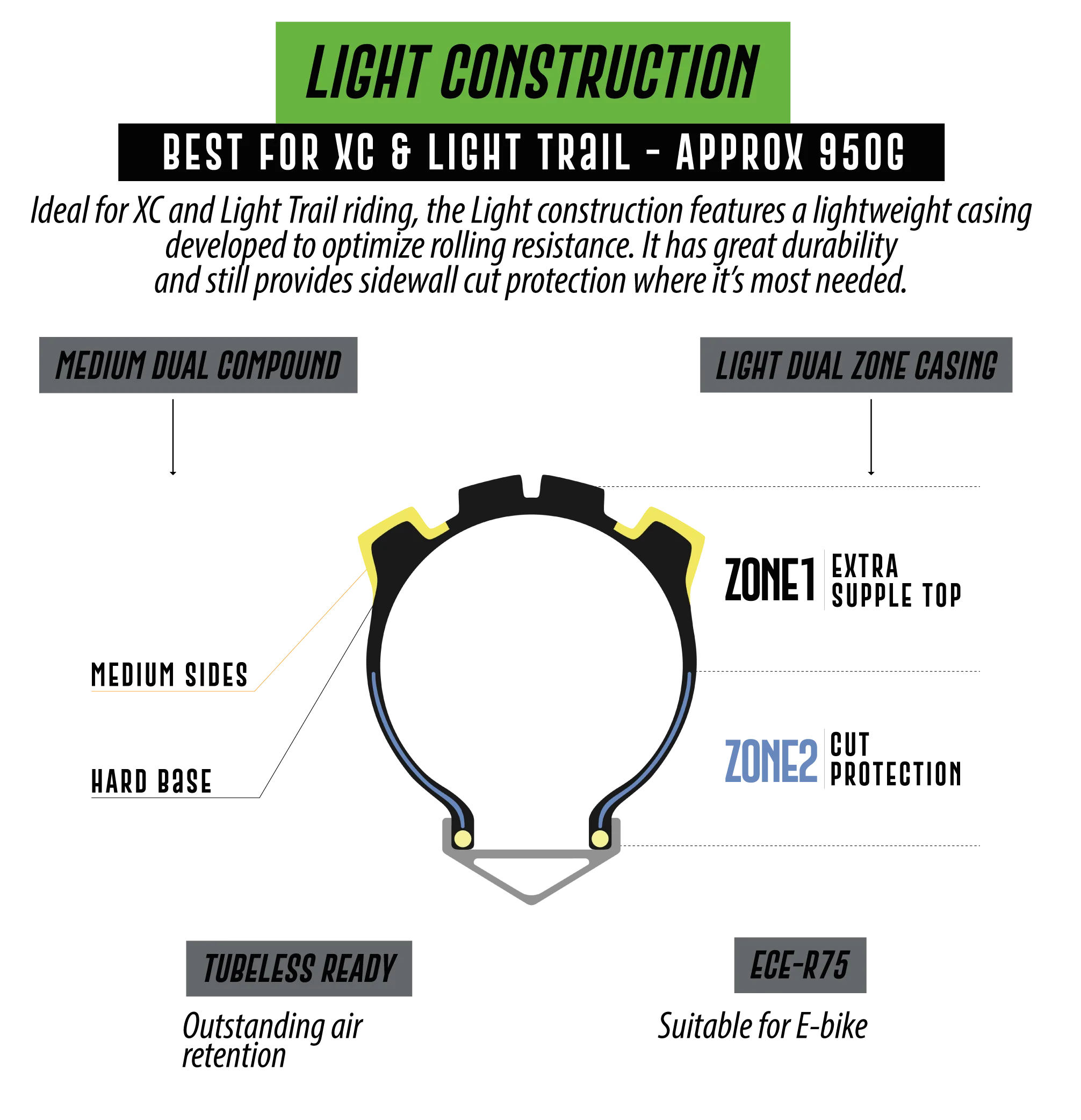 | Tubeless & E-Bike ready | Tubeless & E-Bike ready |