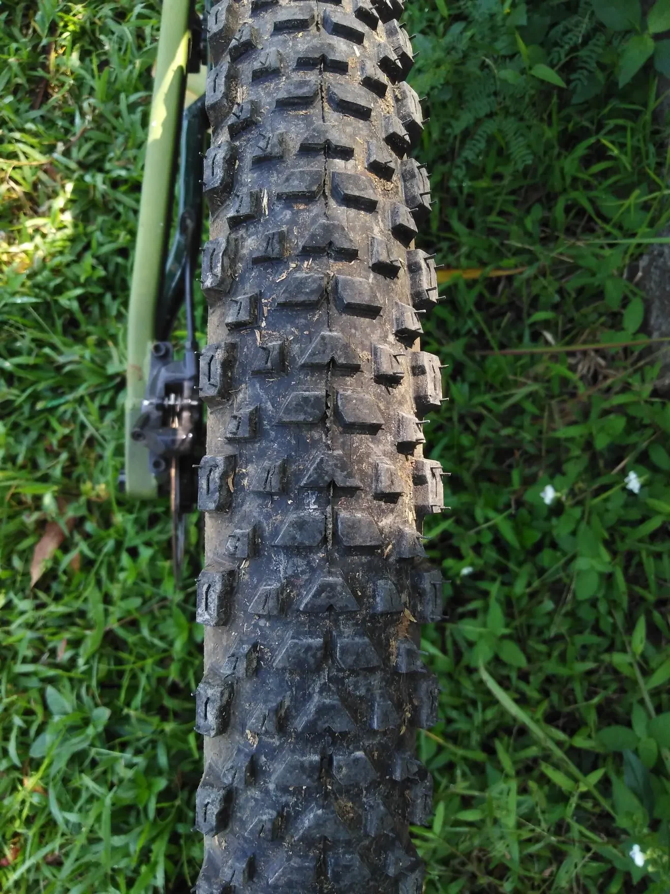 Kelemahannya memang pas ngelewatin bebatuan besar dan akar, licin. Juga pas lewat banyak tanah basah, knob yang kecil bikin ban langsung hilang knobnya, ketutup tanah semua.