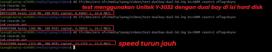 Test Menggunakan Unitek Y-3032 dengan 2 Hard Disk Terpasang