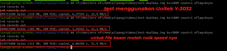 Test Menggunakan Unitek Y-3032 dengan 1 Hard Disk Terpasang