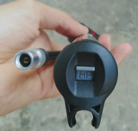 Terdapat dua fungsi yang bisa di switch di bagian bawah, yaitu HV (High Volume) & HP (High Pressure). HV digunakan untuk memompa ban, HP digunakan untuk memompa shock, jangan kebalik!
