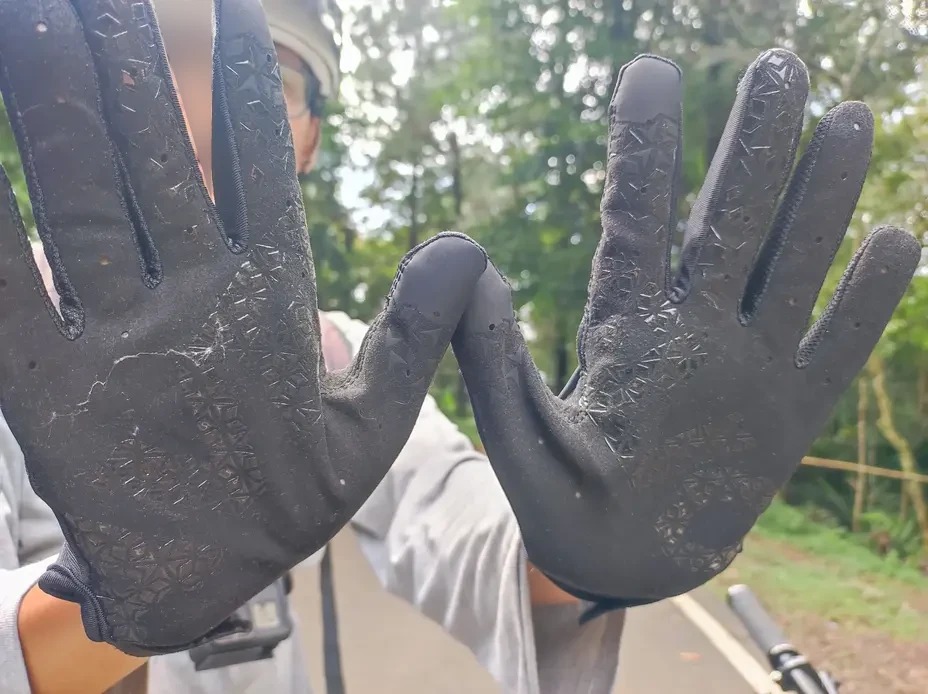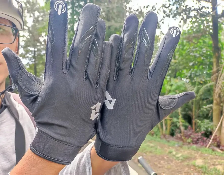 Langsung saya test di pake maen ke bike park. Sarung tangan ini nyaman digunakan untuk orang yang biasa tidak menggunakan sarung tangan. Terasa lebih aman juga saat digunakan, bagian tangan se-enggaknya sudah terlindungi.